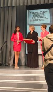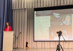 Заместитель директора Архива РАН О.В. Селиванова выступила с докладом «Дорога в космос Владимира Комарова: что могут рассказать документы Архива РАН». Она рассказала школьникам о таких пионерах космонавтики, как К.Э. Циолковский и С.П. Королёв, чьи идеи и усилия сделали возможными полеты человека в космос. Особое внимание О.В. Селиванова уделила трагической биографии В.М. Комарова. От имени Архива РАН О.В. Селиванова подарила школе книги по истории космонавтики.