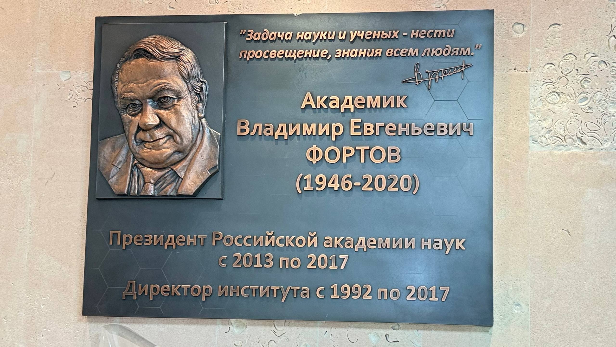 Предваряла сессию церемония открытия мемориальной доски на здании института, где многие годы работал Владимир Евгеньевич. Вице-президент РАН академик С.Л. Чернышёв выступил с приветственным словом. Он, как и другие участники открытия, высказал теплые слова в адрес В.Е. Фортова, вспоминая годы совместной с ним работы.