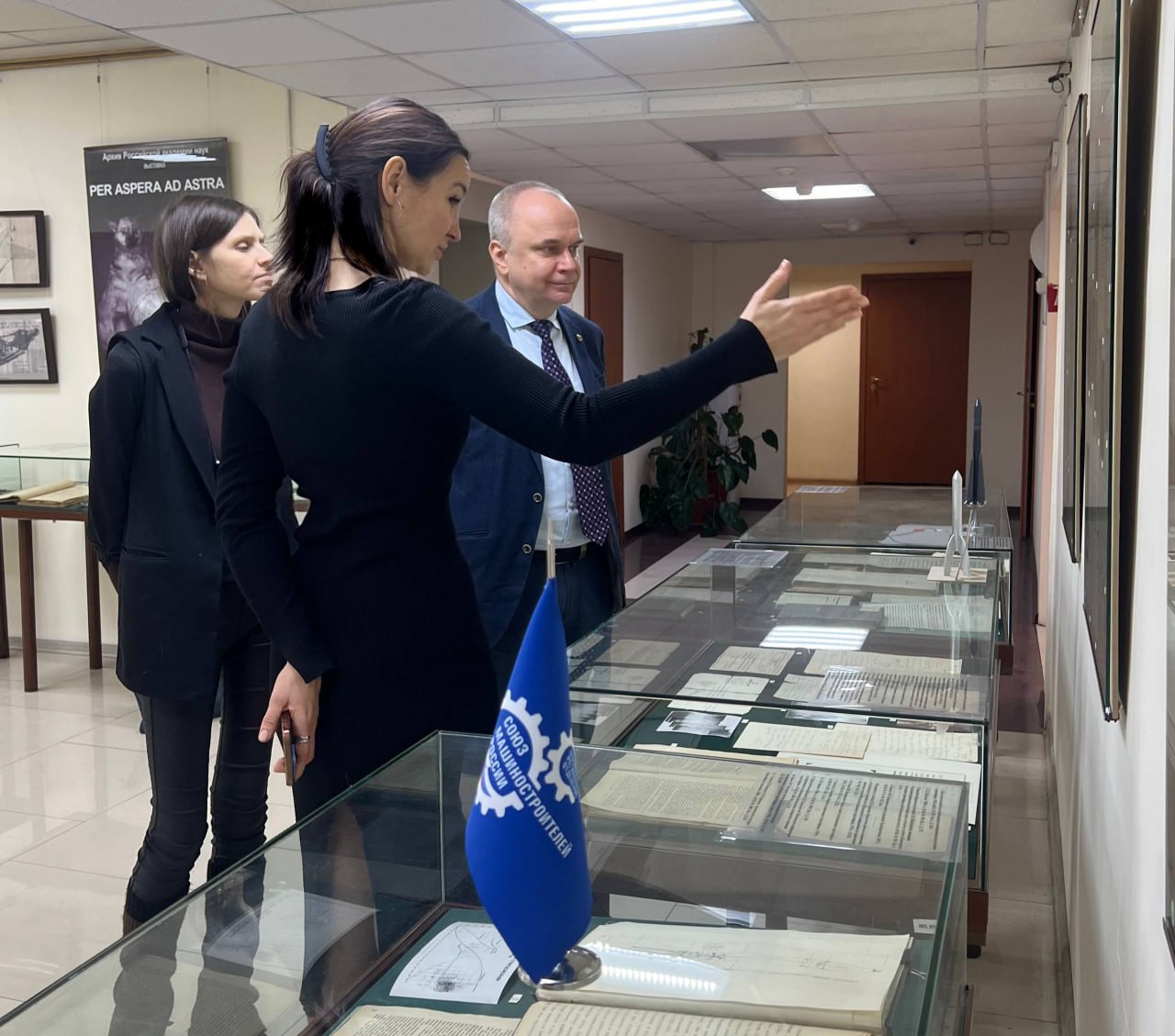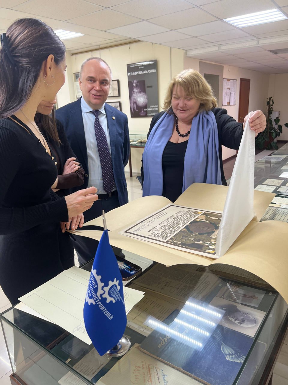 Заместитель директора Архива РАН, к.и.н. О.В. Селиванова провела экскурсию по документальной выставке «Per aspera ad astra» («Через тернии к звездам»), созданной Архивом при поддержке Московского областного РО «Союз машиностроителей России». Гостям также продемонстрировали кабинет-музей академика А.Н. Несмеянова и уникальные архивные документы, связанные с жизнью и деятельностью академика Н.С. Курнакова.