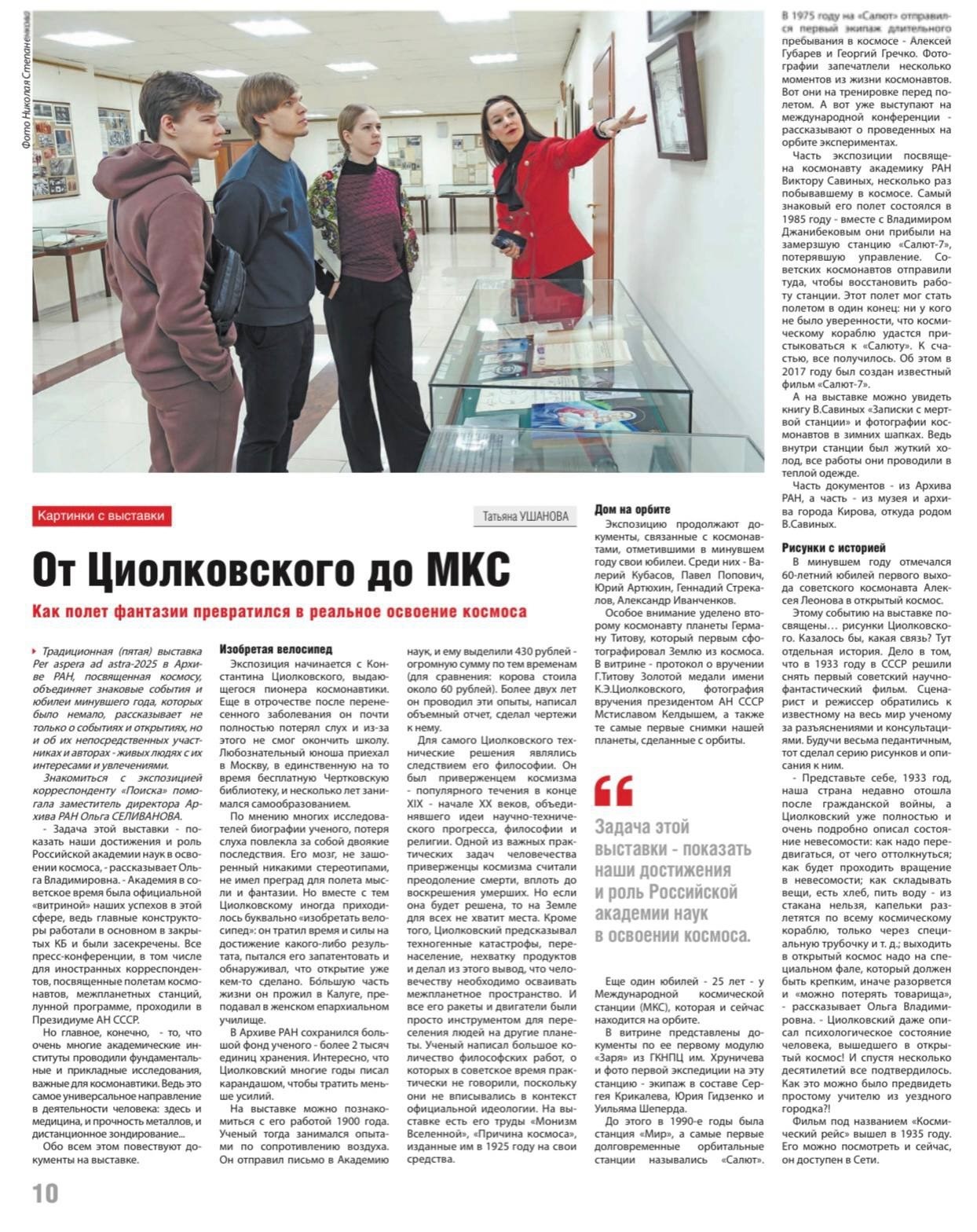 Космическая выставка Архива РАН - в интервью газете научного сообщества «Поиск».