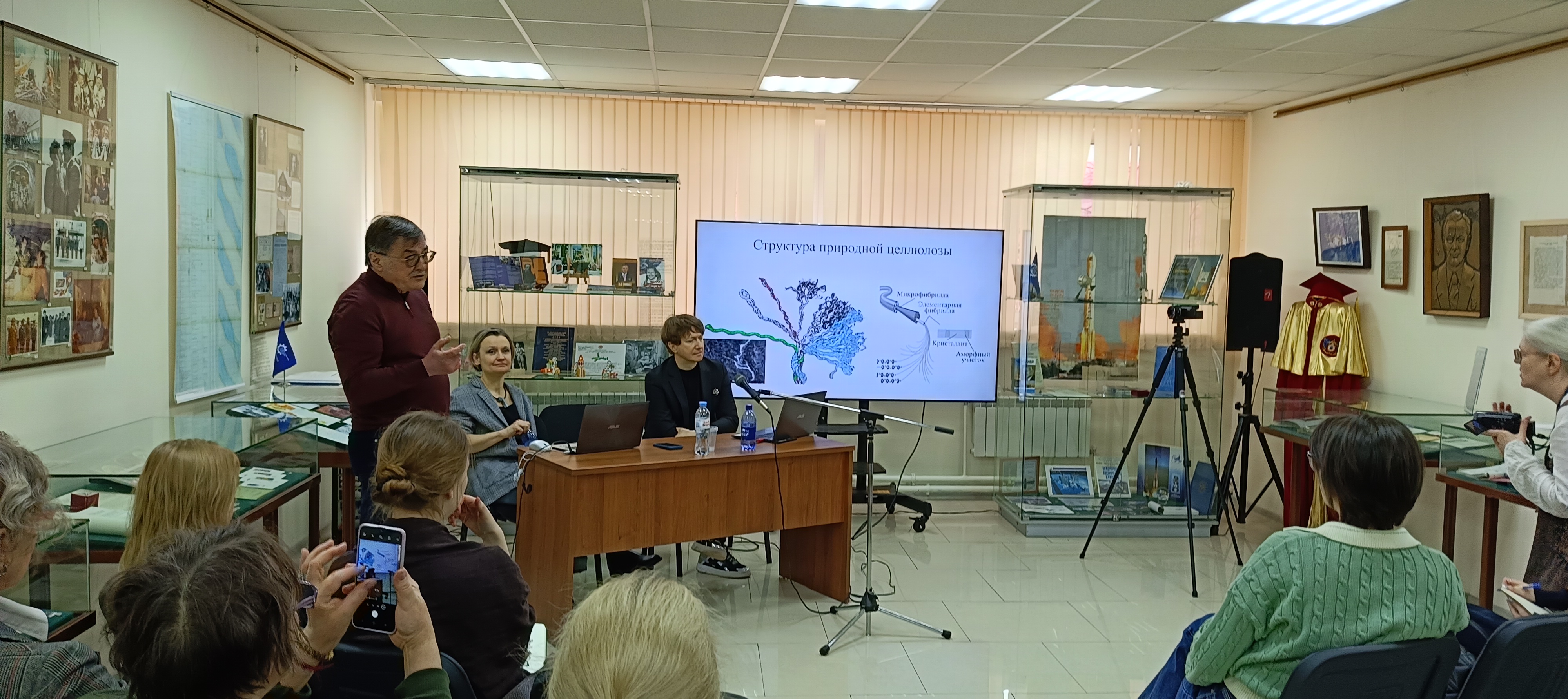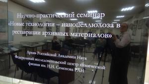 14 апреля 2026 года в Архиве РАН состоялся научно-практический семинар «Новые технологии – наноцеллюлоза в реставрации архивных материалов», который провели старшие научных сотрудники Отдела учета и обеспечения сохранности Н.П. Масленникова и А.А. Кащеев совместно с коллегами из Лаборатории химической физики биосистем Федерального исследовательского центра химической физики имени Н.Н. Семенова РАН. Наноцеллюлоза – инновационный материал, формирующий нанослой на поверхности носителя, идеально сходный по химическому составу основе большинства архивных памятников, способствующий сохранению гибкости бумаги, увеличению ее прочности и укреплению красочного слоя, а наноразмер усиливает физико-химическое взаимодействие между упрочняющим составом и той основой, которую необходимо сохранить. При этом информационная функция документа (визуальная яркость чернил, красок и т.д.) не страдает. Сотрудниками Архива уже накоплен значительный опыт использования наноцеллюлозы для реставрации бумаги, дерева и ткани, которым они и поделились с коллегами.