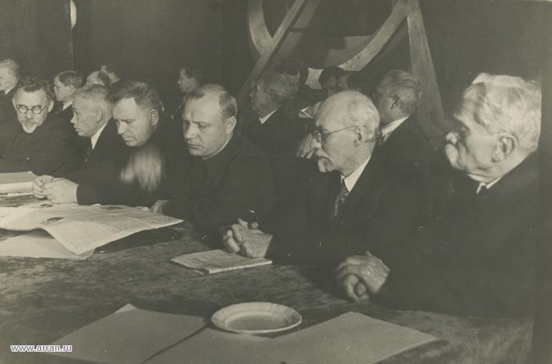 И.И. Шмальгаузен за столом Президиума Киевского Горсовета на торжественном собрании, посвященном 100-летнему юбилею Киевского Университета. Киев, 17 декабря 1935 г. Фотография.