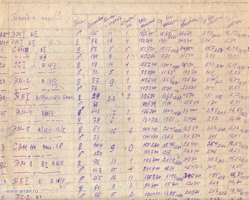 Таблица наблюдений за опытными растениями, составленная Эфроимсоном В.П. 1946-1947 гг. (АРАН. Ф.2024. Оп.1. Д.18. Л.2.) |