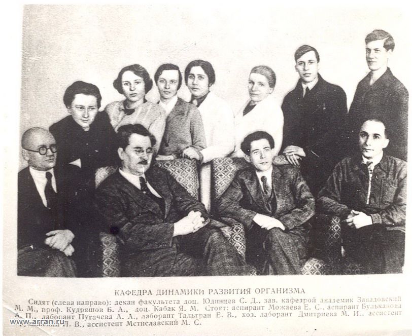 М.М. Завадовский с сотрудниками кафедры динамики развития МГУ. Фотография. 1930 г.. (АРАН. Ф.1593. Оп.1. Д.152. Л.1.) |