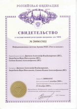 В декабре 2009 г. ядро ИСАРАН – ПО «Учет и Каталог» и БД  «Архив РАН» были зарегистрированы в Роспатенте (номера свидетельств  в государственном реестре – № 2009620604 и № 2009617035).