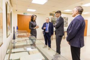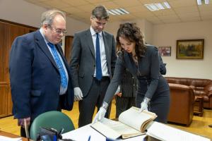 Визит был посвящён обсуждению перспектив сотрудничества и, что особенно важно, прямому диалогу с уникальными документами, запечатлевшими рождение отечественной космической эры.Знакомство с архивным наследием началось с традиционной выставки «Per Aspera ad Astra», подготовленной с участием Московского областного РО Союзмаш и РГА в г. Самаре. Экскурсию по ней провела заместитель директора Архива РАН Ольга Владимировна Селиванова, обратив внимание гостя на разнообразие материала - от зарисовок стратосферных ракет и черновиков МКС «Энергия-Буран» до фотографий, личных документов конструкторов и международных поздравлений.